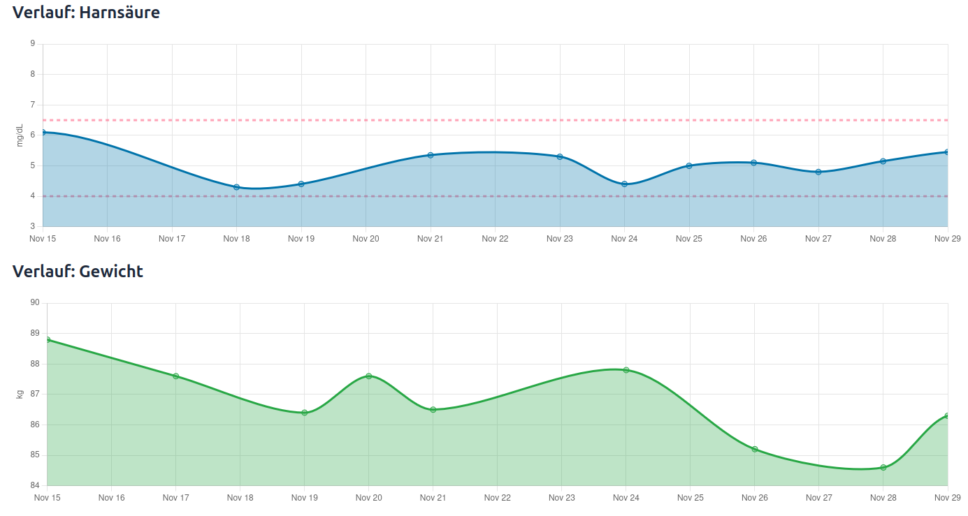 Fast 30kg Differenz. Jedes Kilo weniger entlastet nicht nur die Gelenke, sondern senkt den Harnsäurespiegel messbar.