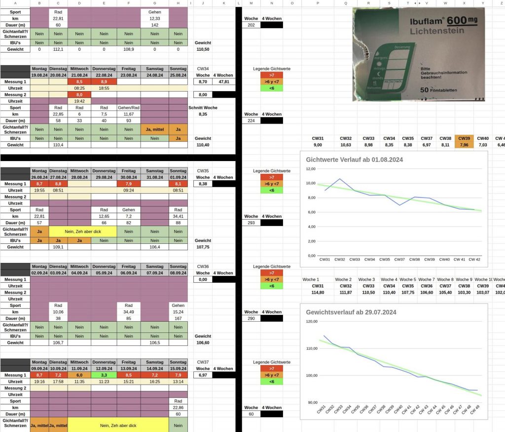 „Alles in Maßen“ war mir zu ungenau. Ich wollte Fakten. Also kaufte ich ein Harnsäure-Messgerät und notierte jedes Gramm Essen, jede Bewegung und jeden Wert in einer monströsen Excel-Tabelle.